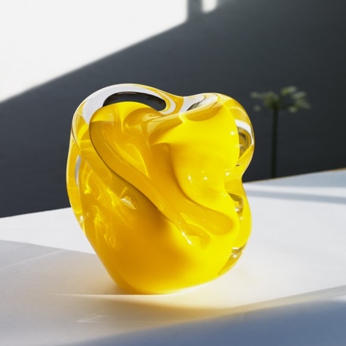 The soap bubbly top of these laps are blown in crystal clear glass by first inflating the sphere and then deflating it slowly. The glass then choose it own form.